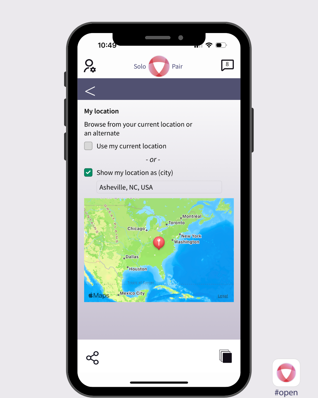 Tap the back arrow and your location will change and you will see new members in Card and Grid View based on that new location.